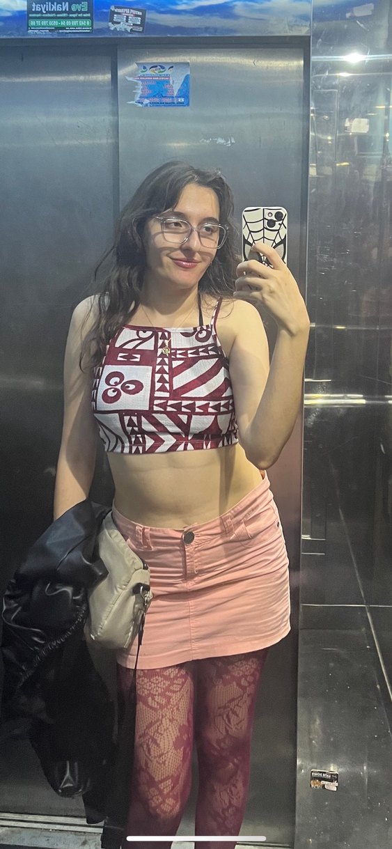 Pembe tonlarında, hafif batik desenli, sentetik koton dokusu yumuşak mini etek. Günlük sokak stiline kolay şıklık katar. ✨