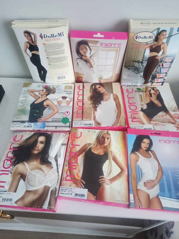 Baskılı detaylara sahip, pembe mini hamile ve emzirme iç çamaşırı. Kısa boy ve vücuda oturan kesim rahatlık sağlar. Paket üzerinde 'mior', 'miorre' ve '$DoReMi' markaları bulunur.