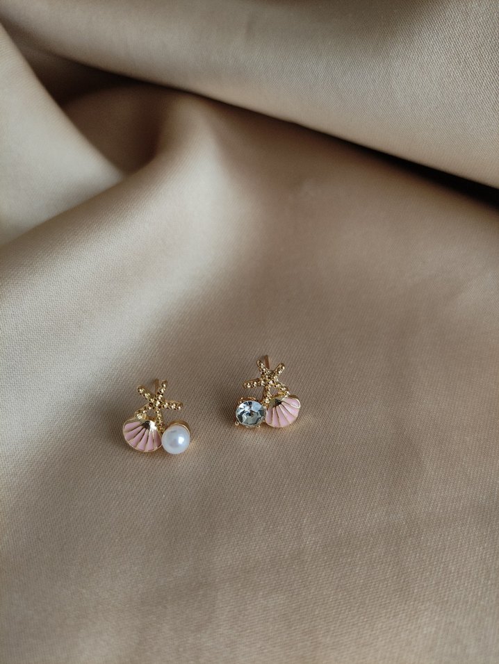 Pembe mini küpeler, boncuklu ve işlemeli detaylara sahiptir. İnci ve taş süslemeleriyle modern klasik tarzı yansıtır.