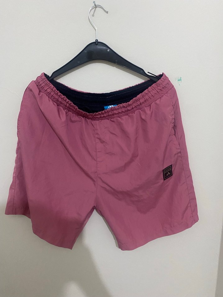 Parlak pembe renkli, bol kesim mini kadın deniz şortu. Sokak stili ve rahat şıklık sunar, plajda kullanıma uygundur.