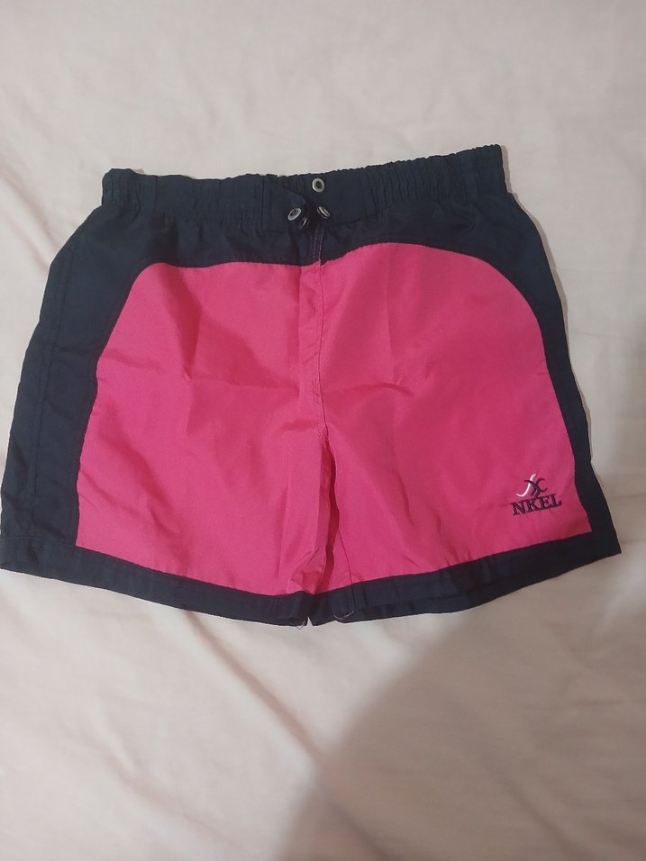 Bu pembe mini erkek şort mayo, siyah kenarlarla dikkat çeker. Bel detaylı ve sentetik kumaştan üretilmiştir, plaj ve sokak stiline uygundur.
