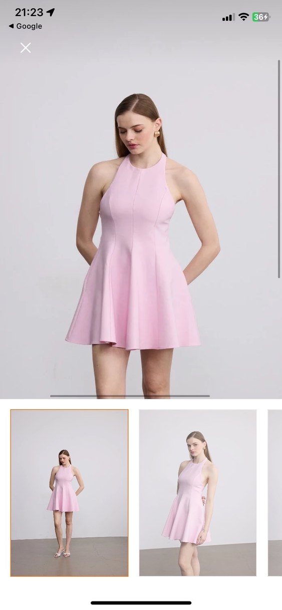 Pembe pastel tonlarında, kısa ve vücuda oturan bu elbise düz dokusuyla akşamlar için uygundur.