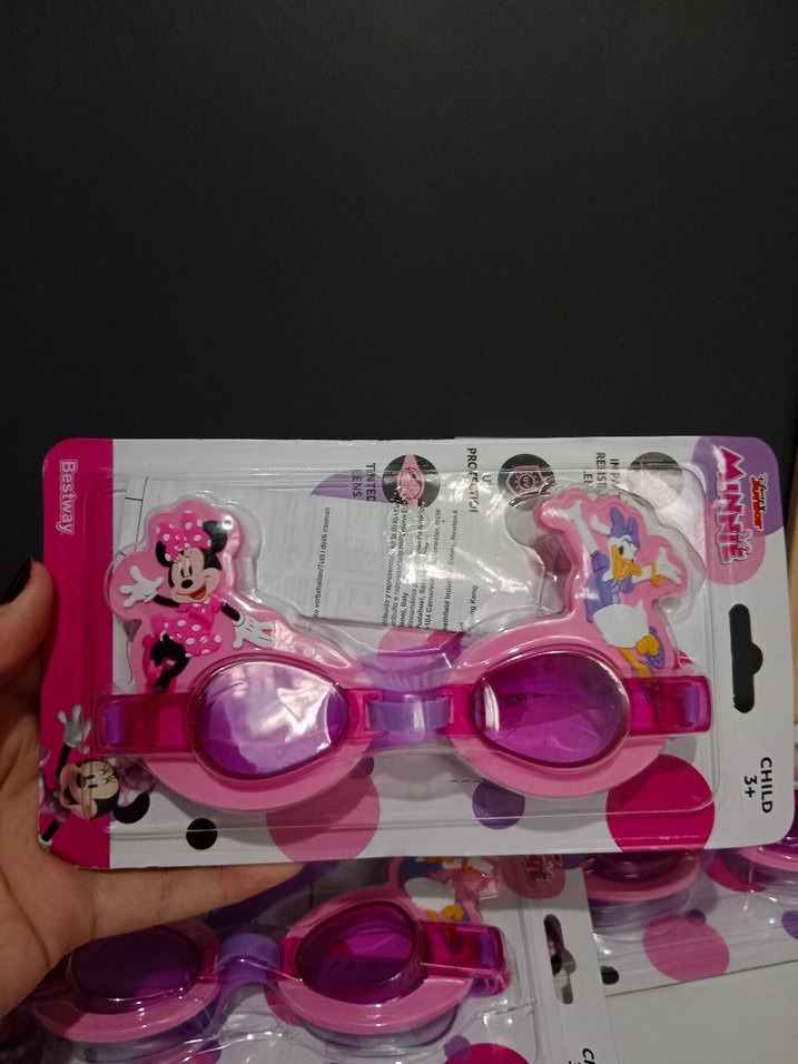 Parlak pembe renkli, Minnie Mouse ve Daisy Duck baskılı, şık ve mini yüzücü gözlüğü beach için uygundur.
