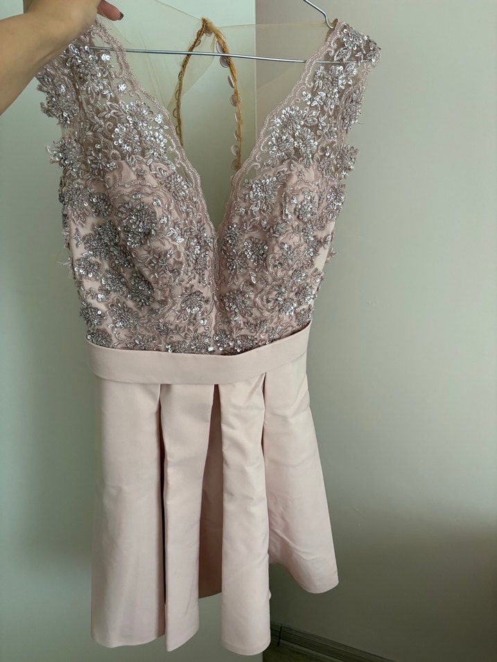 Pembe Mini Payetli İşlemeli Abiye Elbise