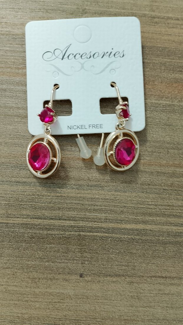 Pembe mini payetli, renkli kısa kadın küpeleri. Modern klasik tarzda, nikel içermez. Romantik akşamlar için uygun.