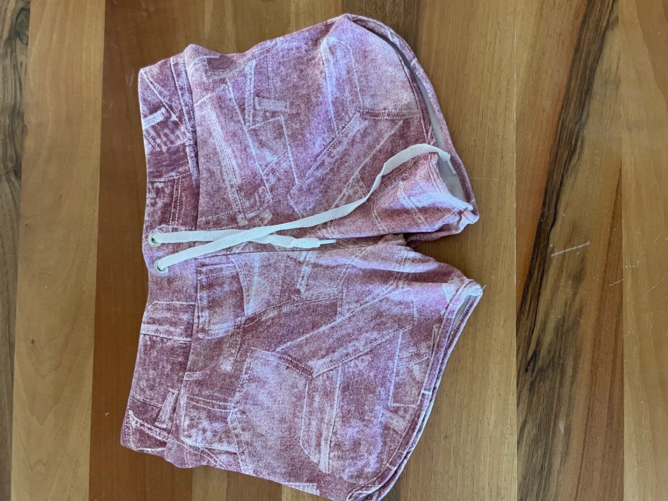 Yumuşak sentetik kumaştan, fermuarlı cepli, bol kesim pembe mini şortu. Günlük sokak stili için uygun.
