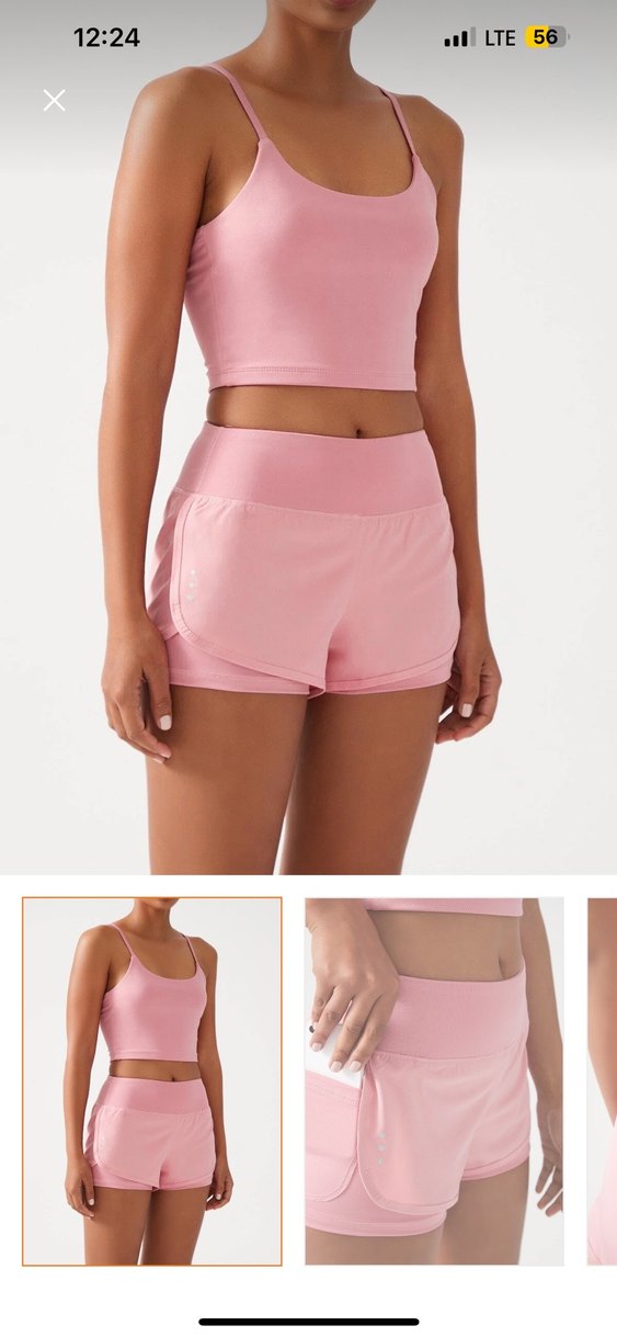 Pembe pastel tonlarda, yüksek bel detaylı, vücuda oturan mini spor şort. Rahat ve şık görünüm sağlar.