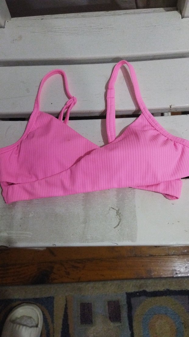 Pastel pembe mini sütyen, ince ayarlanabilir askılar ve desensiz tasarıma sahip, athleisure ve sokak stili için uygun.