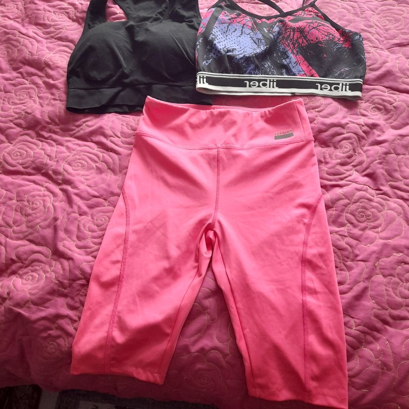 Pembe renkli, elastik sentetik kumaştan yapılmış, mini uzunlukta ve dar kesim spor tayt. Cesur sokak stili için uygun, renkli görünüme sahip.