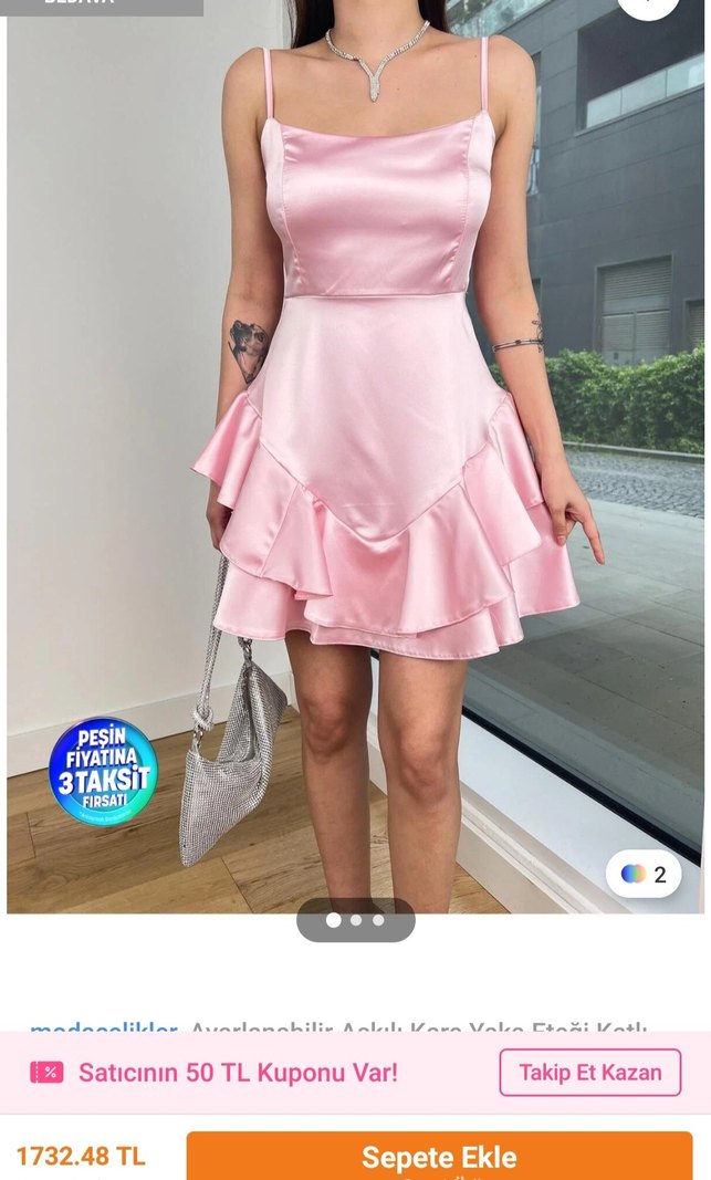 Pembe mini elbise, straplez yaka ve fırfır detayları ile tasarlanmıştır. Sentetik kumaştan üretilen bu elbise, parti ve günlük sokak stili için uygundur.
