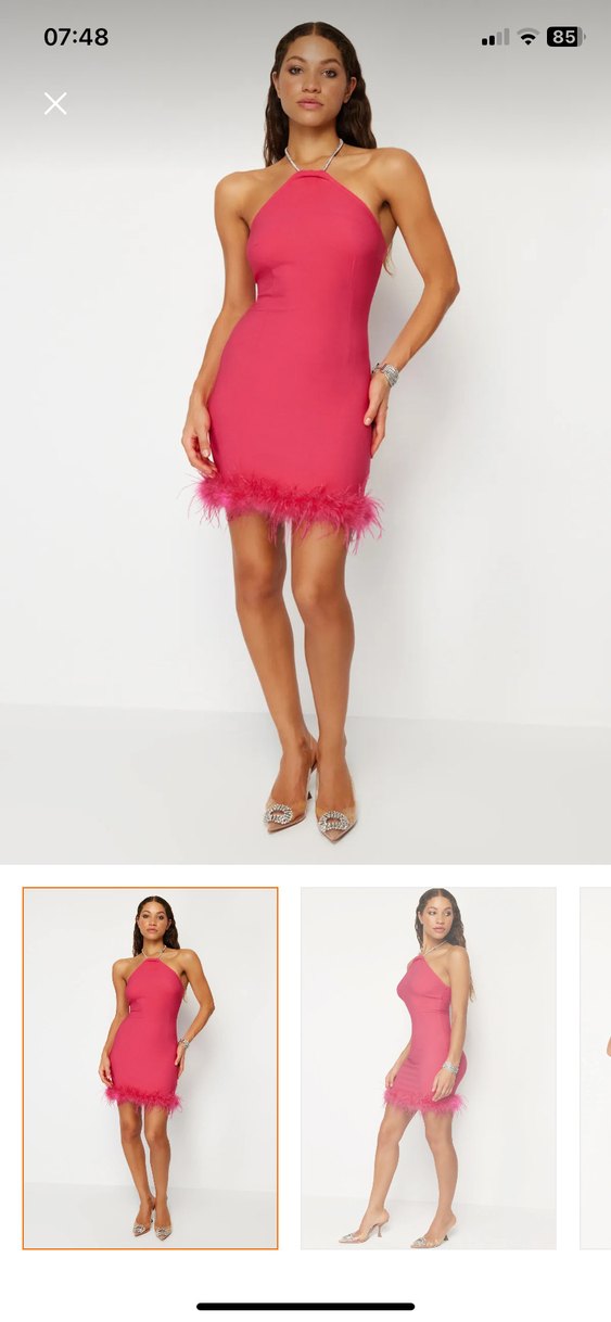 Pembe Mini Straplez Tüylü elbise