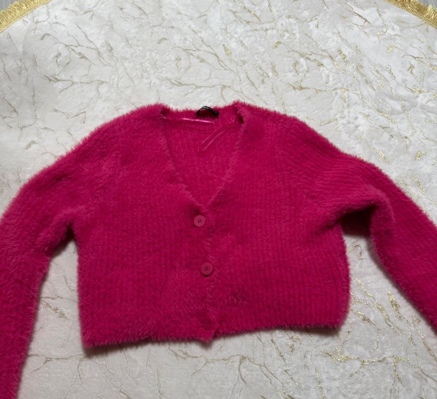 Pembe renkli, V yakalı ve uzun kollu kısa kesim triko kadın hırka. Rahat ve bol kesimiyle günlük kullanıma uygundur. Yumuşak ve konforlu dokusu vardır.