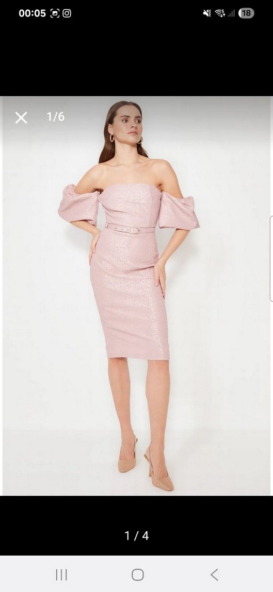 Pembe mini elbise, straplez yaka ve kemerli bel detayına sahip. Sentetik kumaştan, yılan desenli, klasik ve modern tarzda, romantik akşamlar için uygun.