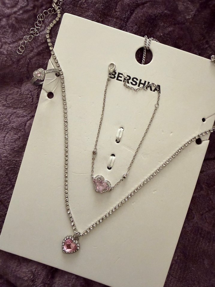 Pembe kalp figürlü mini zincir detaylı, nakış desenli, renkli bohem tarzda Bershka kadın kolyesi.