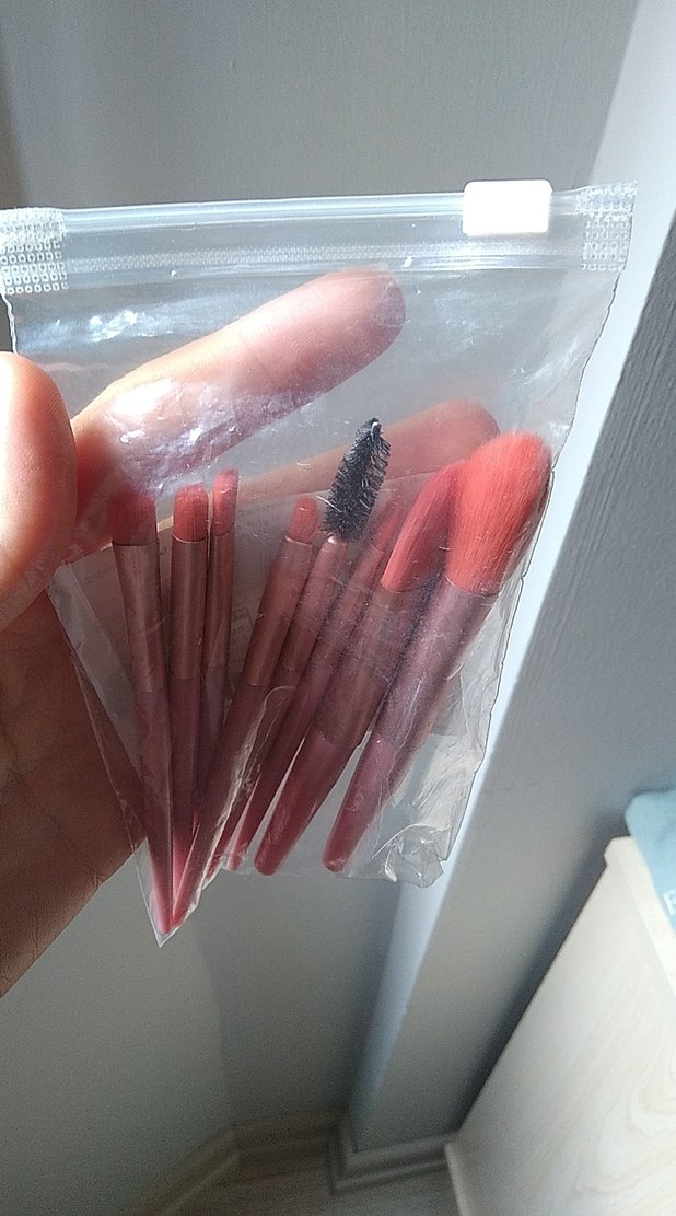 Çeşitli makyaj uygulamaları için farklı fırça tipleri içeren, yumuşak kıllı ve koyu pembe saplı makyaj fırçası seti. ️
