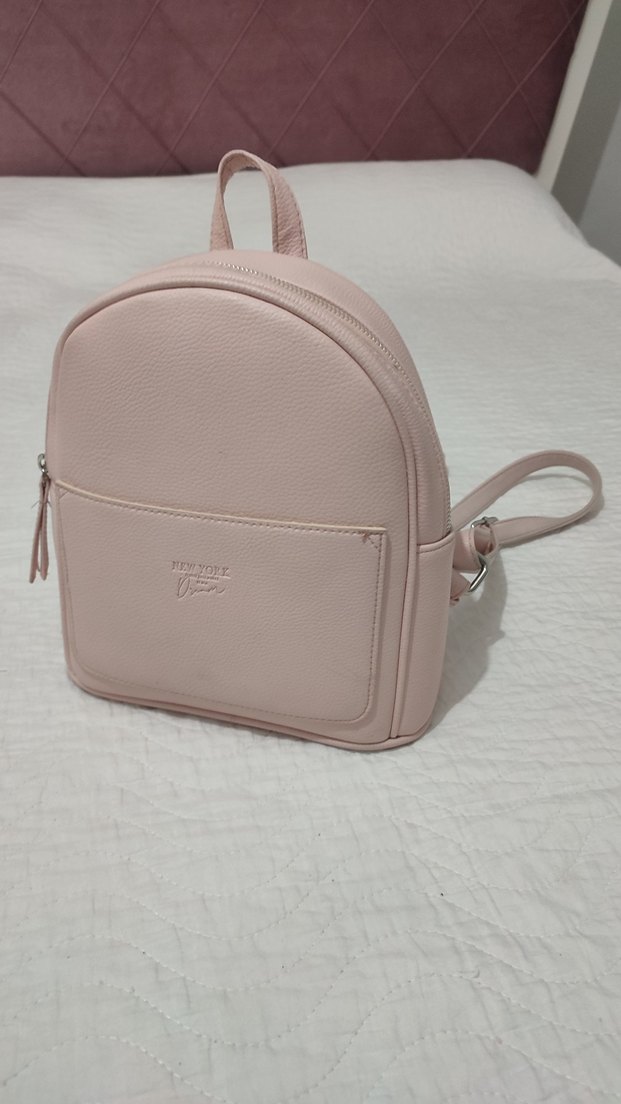 Pastel pembe renkte, fermuarlı ana bölmeli ve ön cepli, minimalist tarzda deri sırt çantası. LCW ürünü .