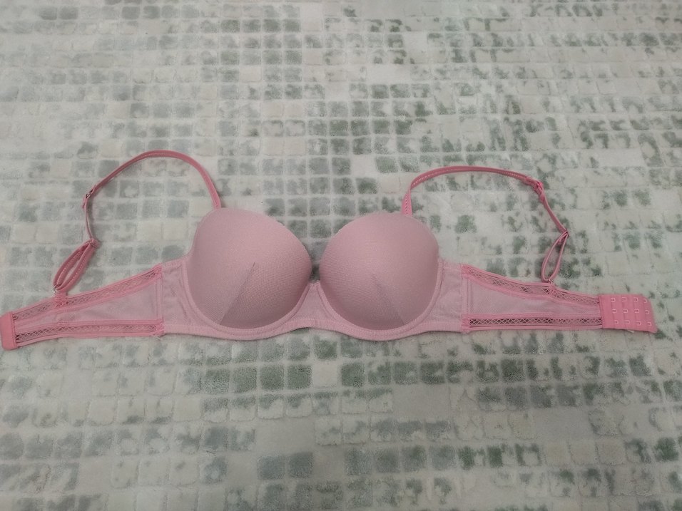 Pastel pembe renkte, desen içermeyen minimalist sütyen. Normal uzunlukta ve midi stilde, rahat bir kullanım sunar.