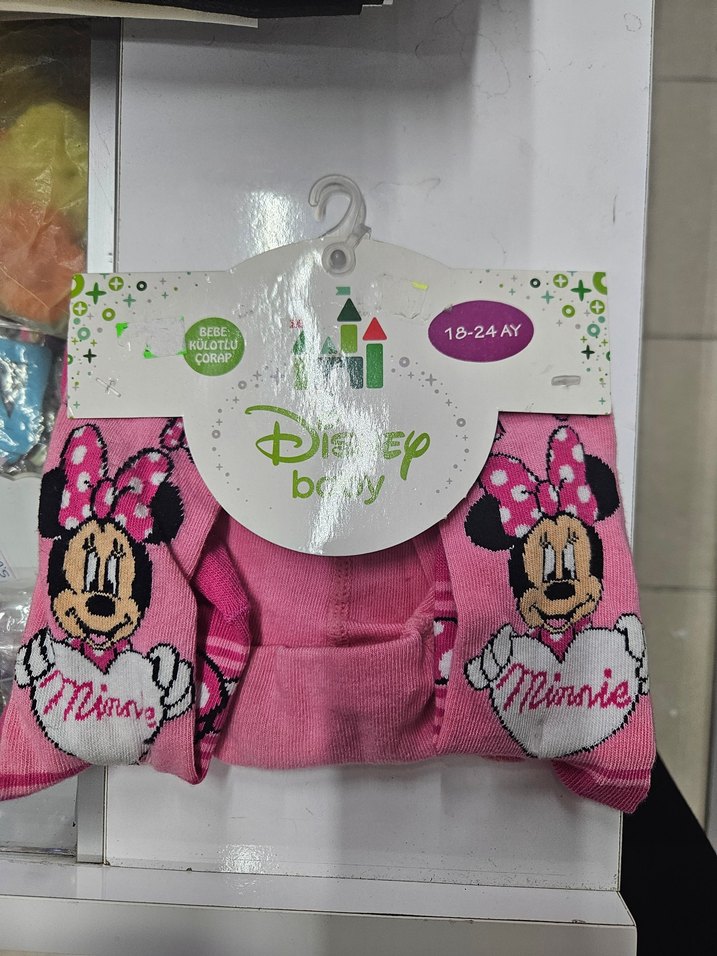 18-24 ay için pembe, renkli Minnie baskılı külotlu çorap .