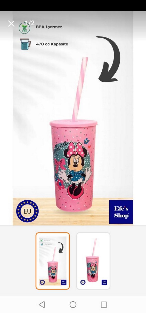 Pembe Minnie Mouse Bardak ve Pipet