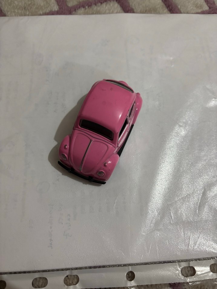 Tekerlekler biraz kötü ama kırık değil Pastel pembe renkte, detaylı cam ve tekerleklere sahip küçük oyuncak araba. Oyun veya koleksiyon için uygun. Ekerlekler