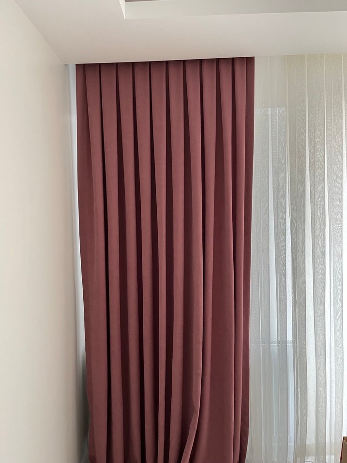 Pembe renkli, modern ve desensiz fon perde, odanıza şıklık katar. 2 adettir En 100 cm boy 2.55 tir Hiçbir sıkıntısı yoktur yeni gibidir #perde #fonperde #brillant #taç