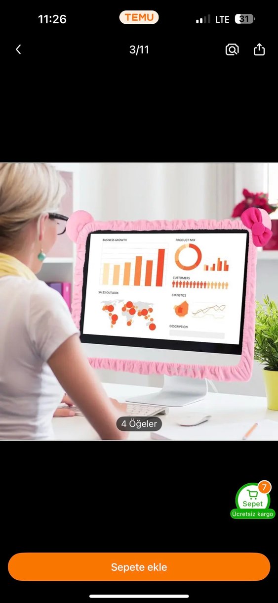 Monitör ekranını çevreleyen, yumuşak pembe koruyucu kılıf