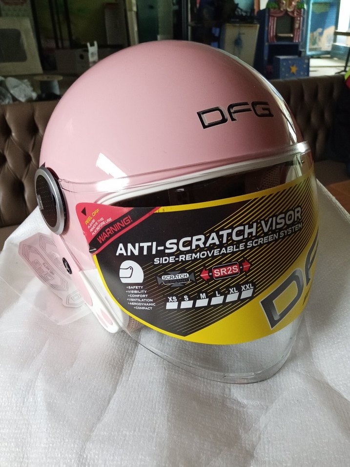 Parlak pembe renkte, motosiklet kaskı. Anti-cizik vizör camlı çift camlı sıfır ürün