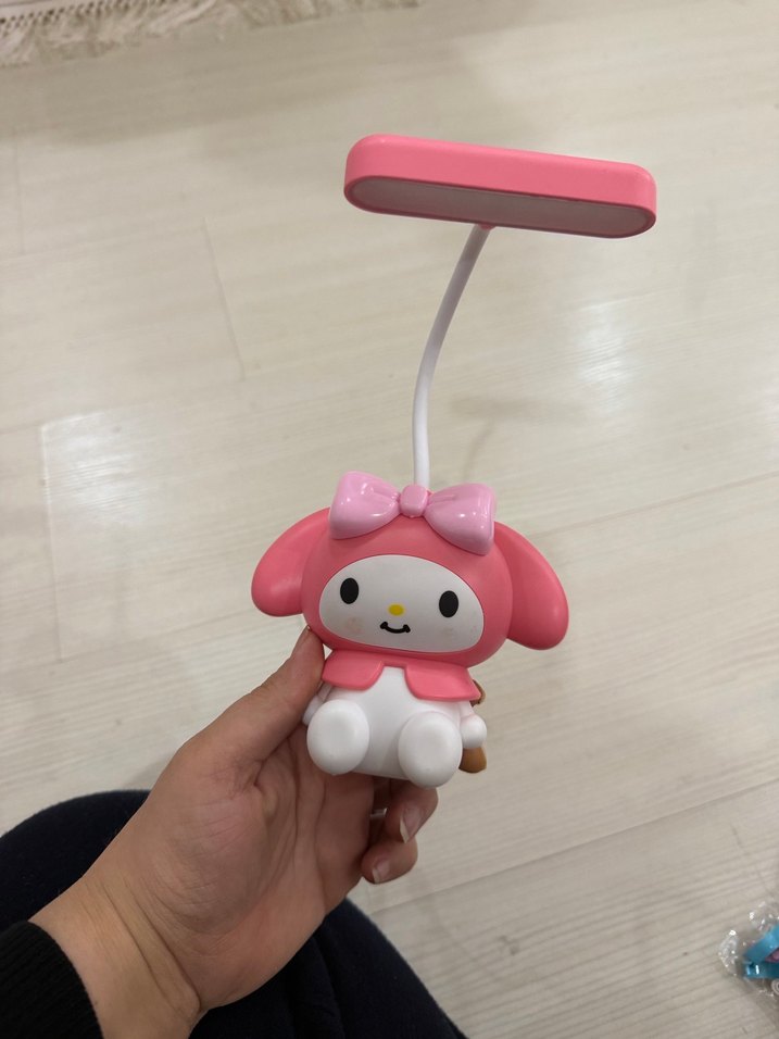 Pembe My Melody masa lambası, esnek boyunlu ve sevimli karakter tabanlıdır, çalışma alanınıza eğlenceli bir dokunuş katar.