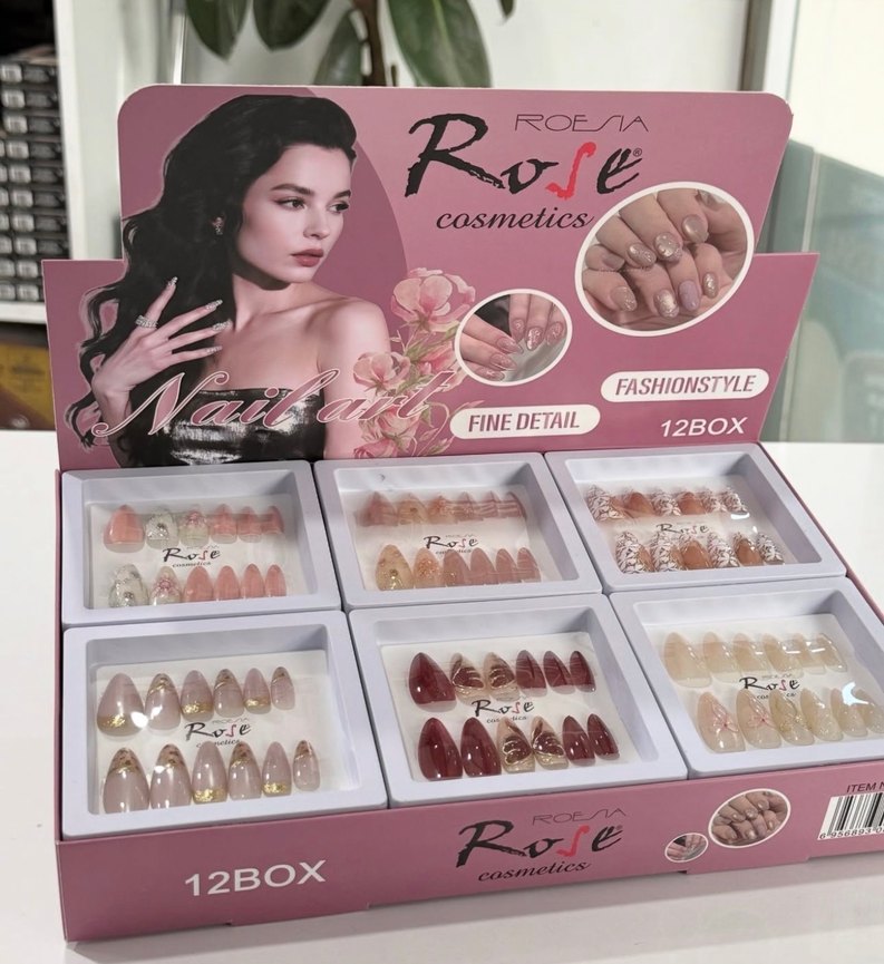 Rose Cosmetics ince detaylı, açık pembe tonlarda çeşitli tırnak süslemeleri bulunur. 1 paket fiyatı