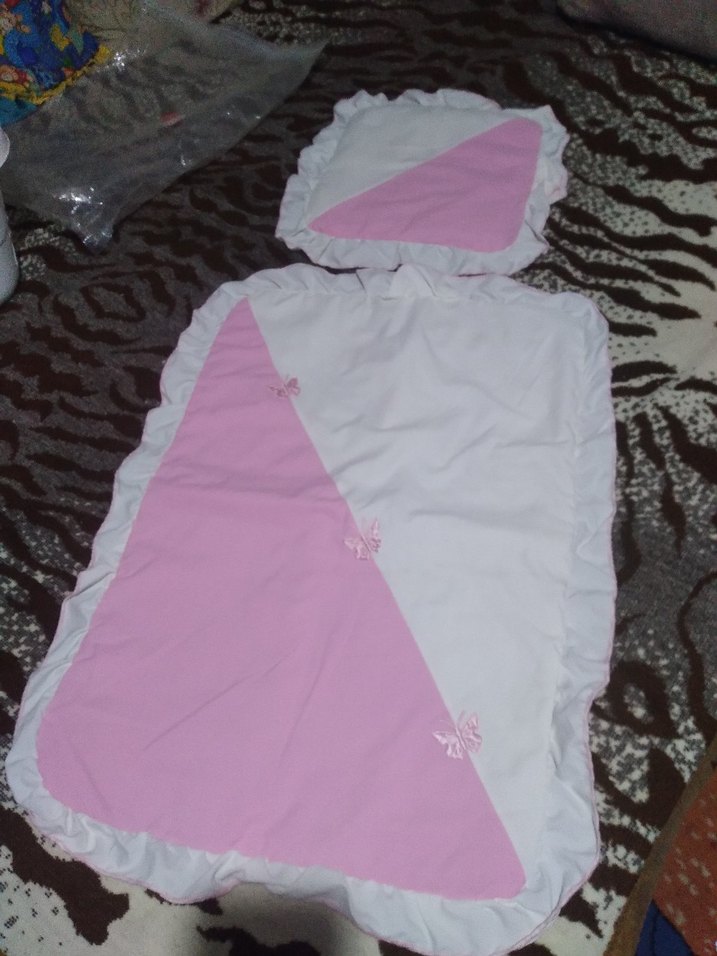 Pembe ve beyaz renklerde, kelebek nakışlı yumuşak ve sıcak dokulu bebek uyku seti. Başlık kısmı bulunmaktadır. Yatak Örtüsü ya da bez değiştirme minderi olarak da kullanılabilir.
