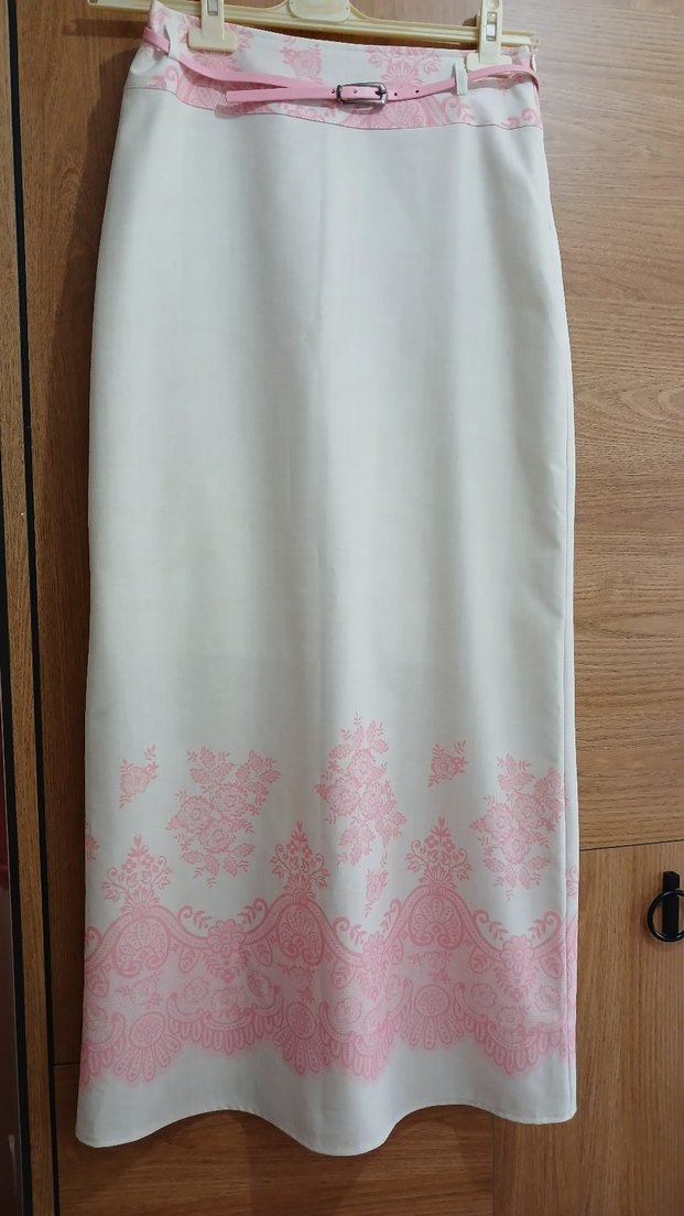 Pembe nakışlı beyaz Uzun Kadın Etek