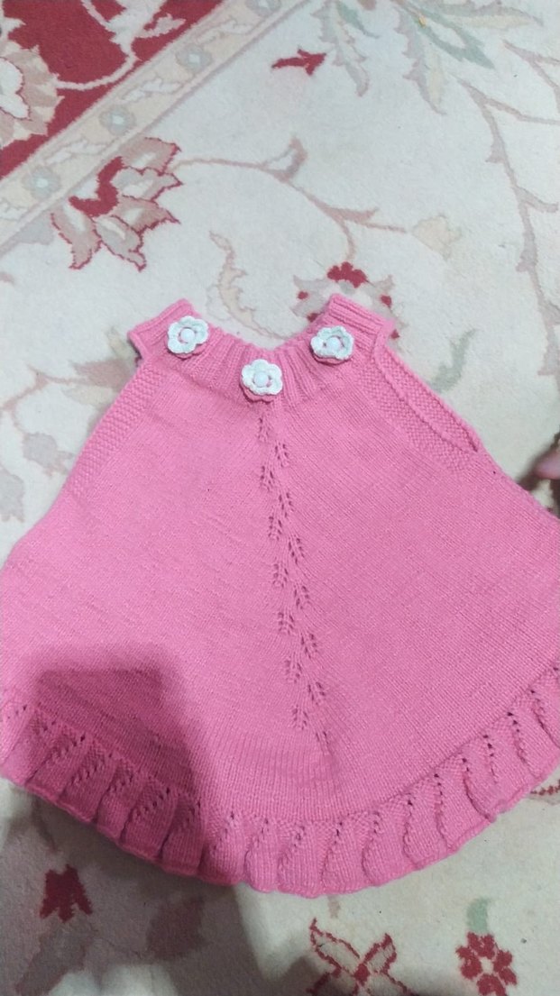 Nakış detaylı, pembe renkli, bohem tarzda, kolsuz ve bol kesim kız triko süveter.