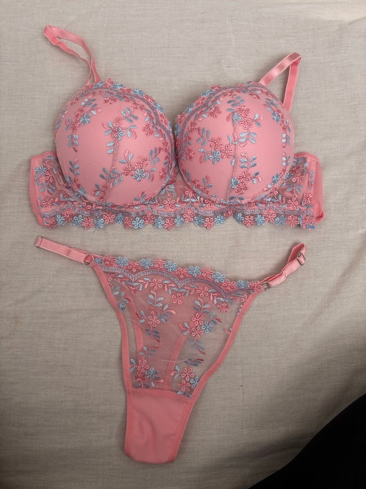 Sıfır üründür. Pembe renkli, nakış işlemeli bohem tarzda sütyen ve tanga takımıdır. Pastel tonlarda, normal uzunlukta ve zarif detaylara sahiptir.