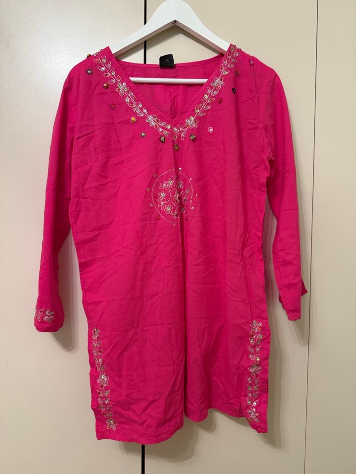 Pembe Nakışlı Bohem tunik