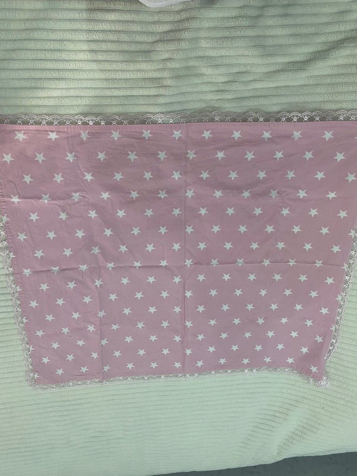 Pastel pembe renkte, yıldız nakışlı, yumuşak sentetik kumaştan çocuk battaniyesi. ️