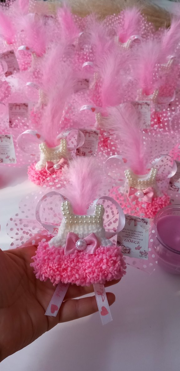 Pembe renkli, kız bebek magnet , inci detayları ve tüy süslemeyle bohem tarz sunar.Arkası mıknatıslıdır. Kaliteli ip ile örülmüştür.
