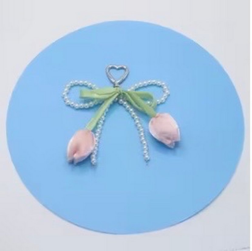 Lale charm anahtarlık,çanta aksesuar, pembe nakışlı çiçekler ve inci detaylarıyla fiyonk tasarımına sahip, bohem ve retro tarzı yansıtıyor. Düğünler ve Paris havası için uygun. Marka temsili