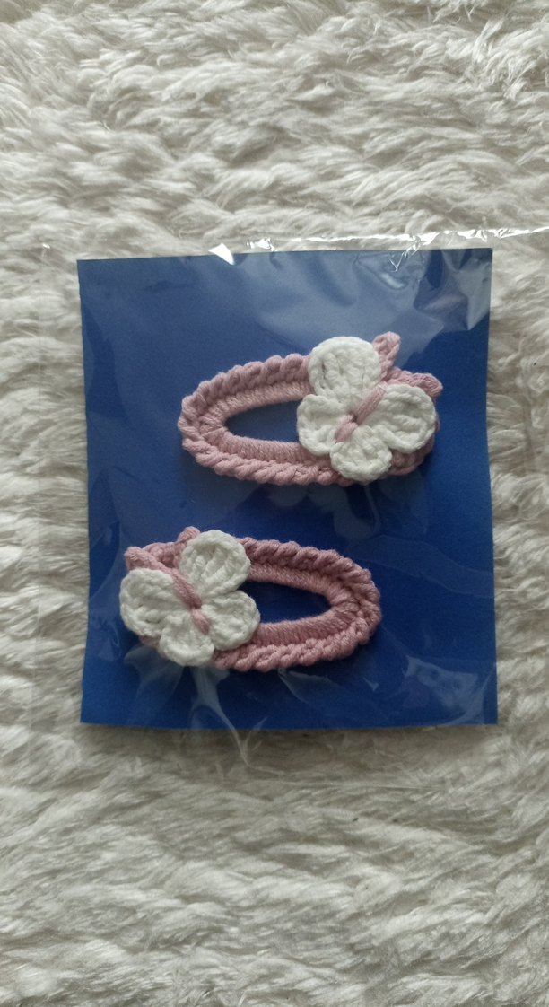 Pastel pembe renkte, üzerinde beyaz nakışlı kelebek detayları bulunan elastik yapıda çocuk saç tokalarıdır. Bohem tarzı yansıtır.