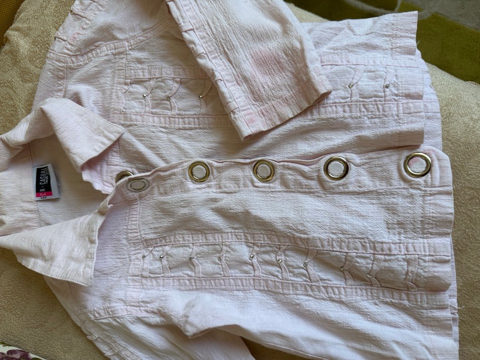 Bu keten çocuk bluzu, düğme detaylı ve kesik yaka ile tasarlanmıştır. Pastel pembe nakış ve ince askılı kollara sahiptir. Bohem ve Paris tarzını yansıtır.