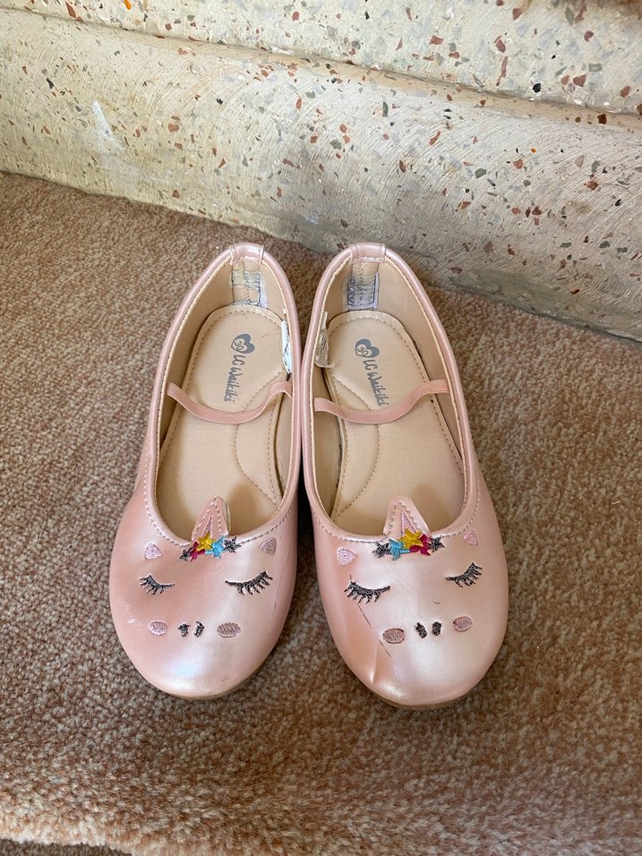 Pastel pembe tonlarında, nakışlı unicorn desenli ve tokalı kayışa sahip kız çocuk babetleri, dayanıklı kauçuk malzemeden üretilmiştir.