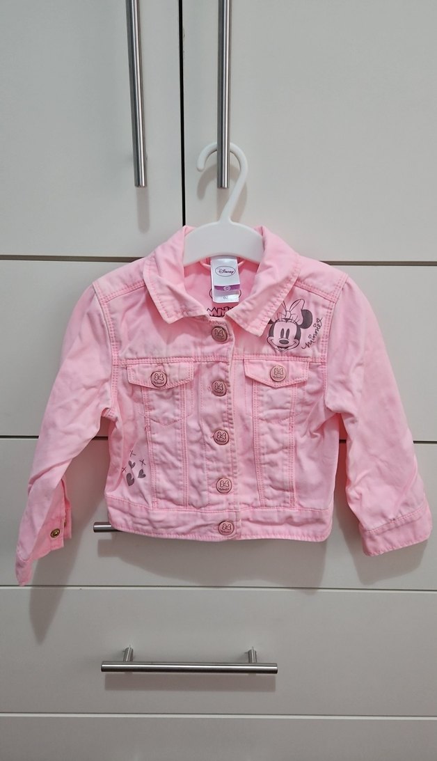Düğmeli, notched lapel yakalı, pembe pastel renkli kız çocuk fitted denim ceket. Nakış detaylarıyla sokak stiline uygun.