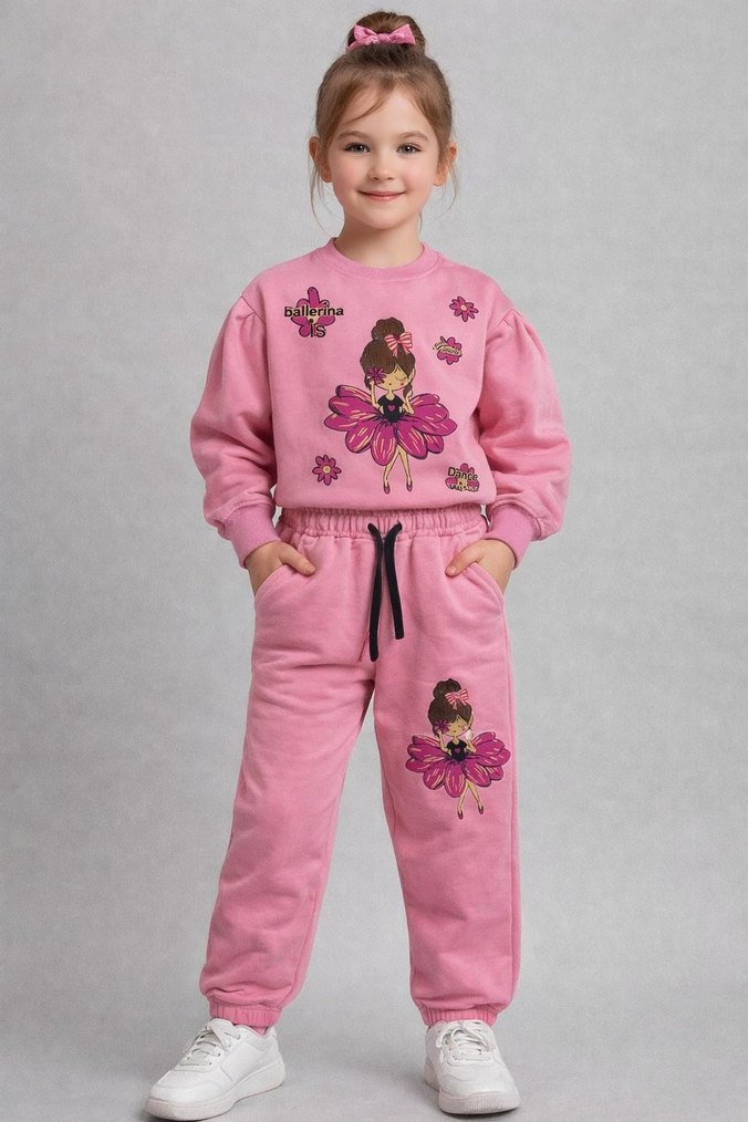 Pembe Nakışlı Kız Çocuk Eşofman Takımı