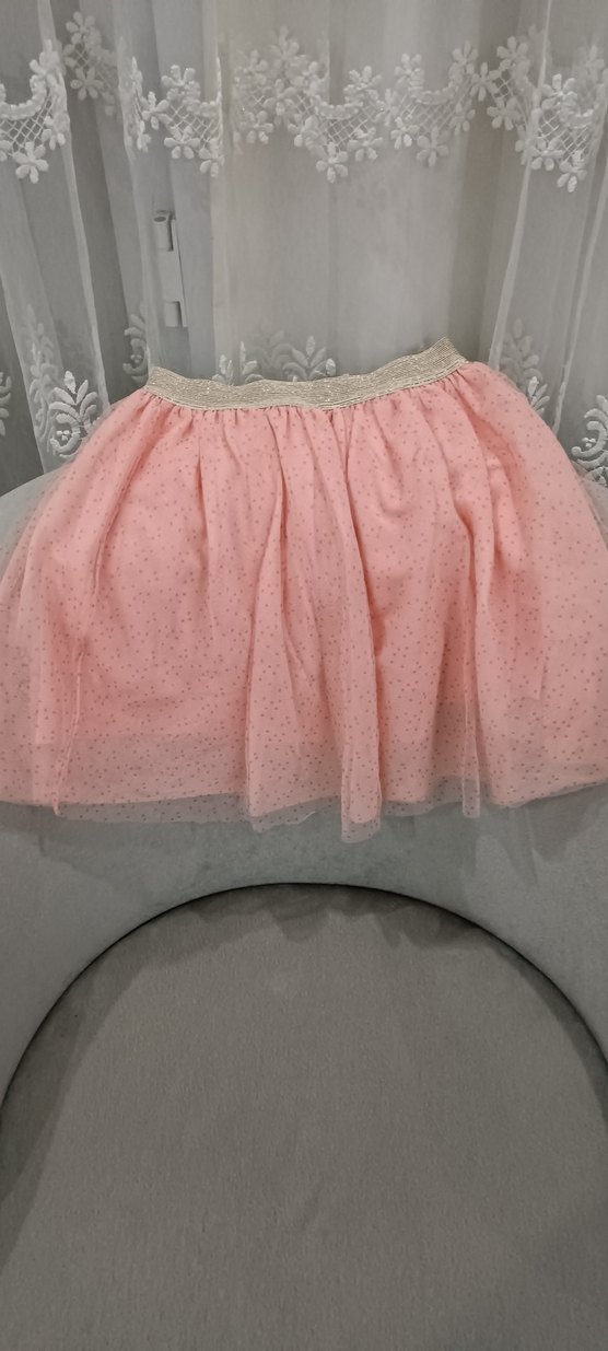 Yumuşak sentetik kumaştan, nakışlı ve fırfırlı detaylara sahip pastel pembe kız çocuk etek.