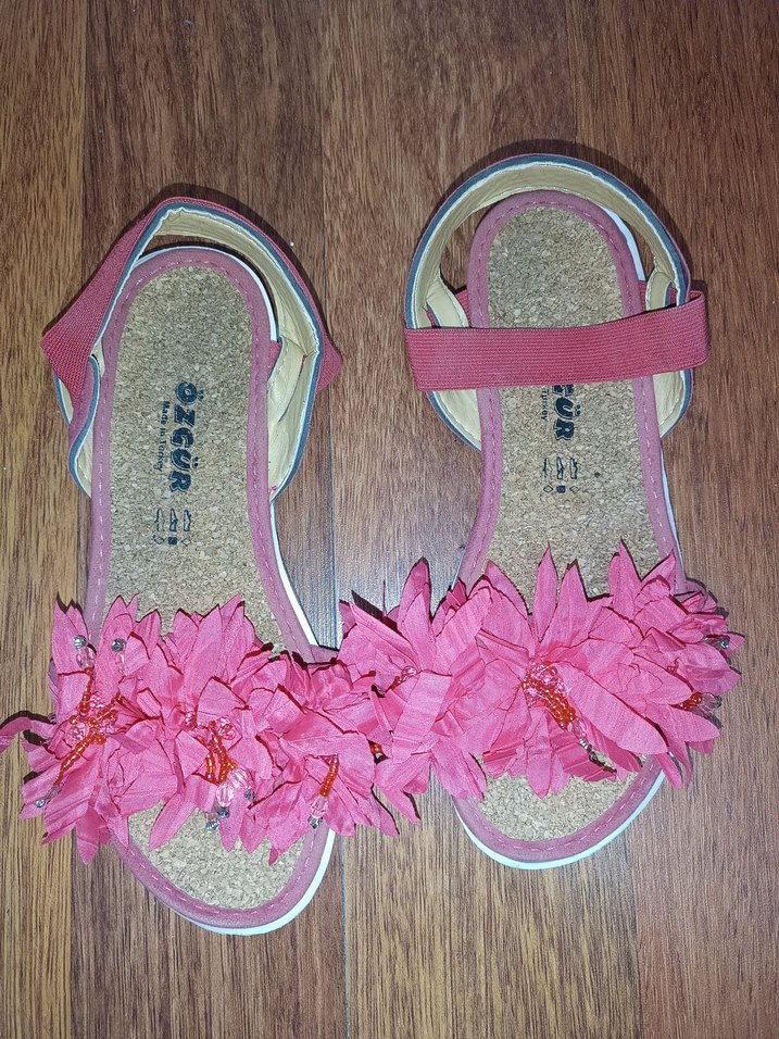 Pembe renkli, lastikli kayışa sahip kız çocuk sandaletleri. Canlı nakışlı çiçek detayları ile bohem tarzda, kauçuk malzemeden yapılmıştır. iade yoktur