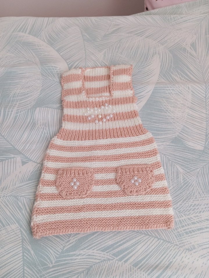 Pembe Nakışlı Kız Çocuk Triko elbise