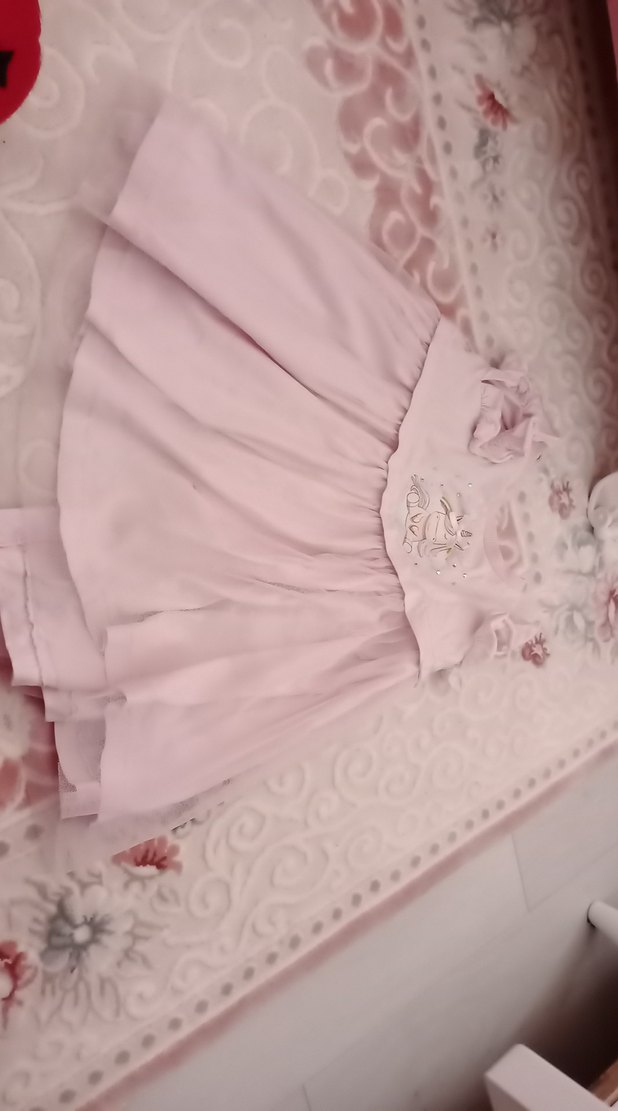 Pembe kız elbisesi, nakışlı desenler ve fırfır detaylarla tasarlanmıştır. Straplez yaka ve bohem tarzda, yumuşak sentetik kumaştan üretilmiştir.