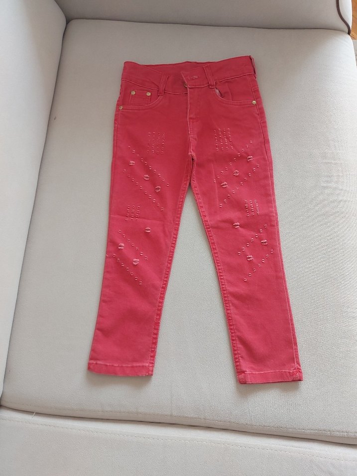 Pembe Nakışlı Kız Kot Pantolon