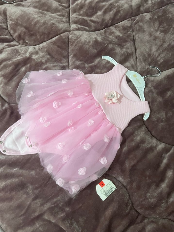 Pembe Nakışlı Kolsuz Kız Çocuk Elbise