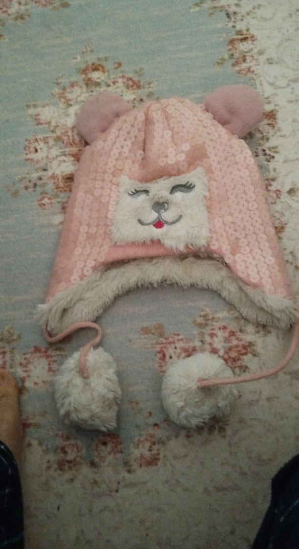 Pastel pembe tonlarında, nakış detaylı, kürklü çocuk bere. Kulaklıklı ve ponponlu tasarımıyla sıcak tutar.