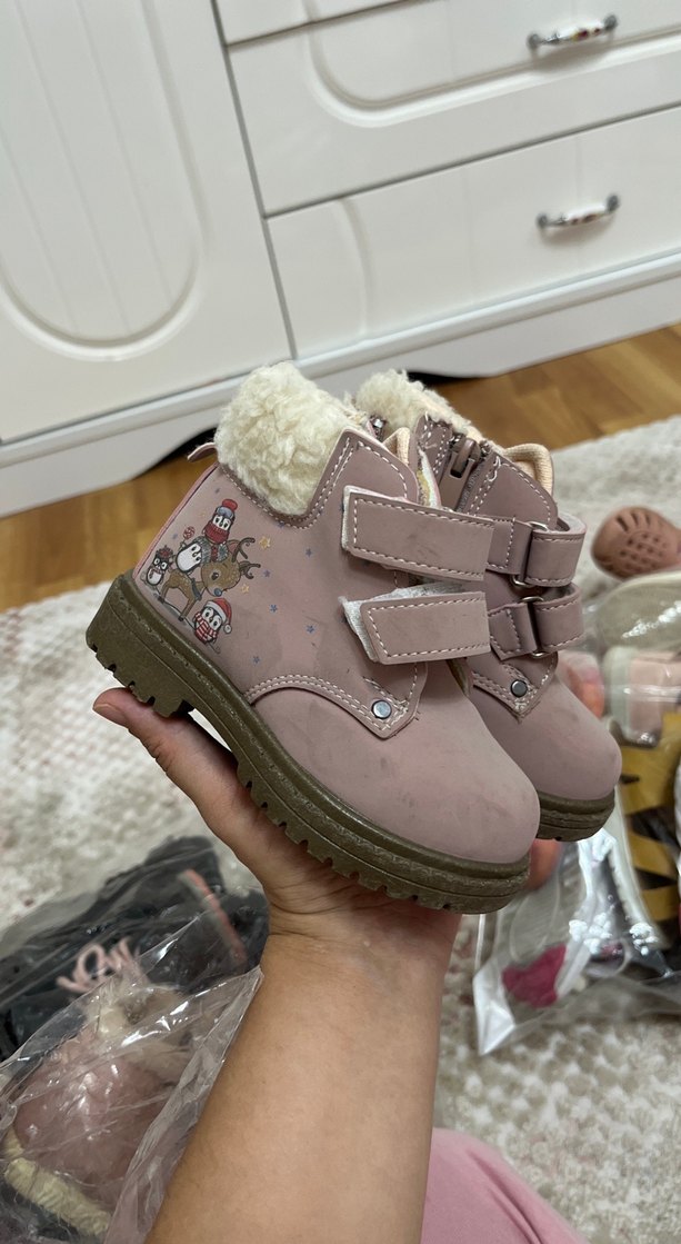 Pembe renkli, nakış detaylı ve yumuşak kürk astarlı kız botu, sokak stiline uygun rahat bir tasarıma sahiptir. ❄️